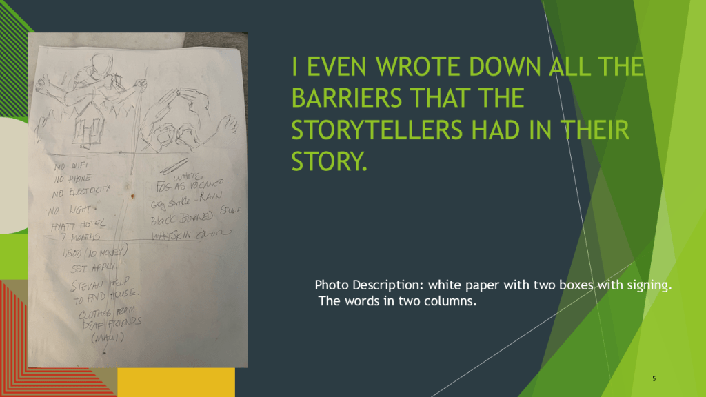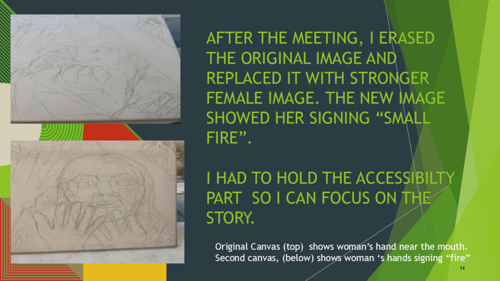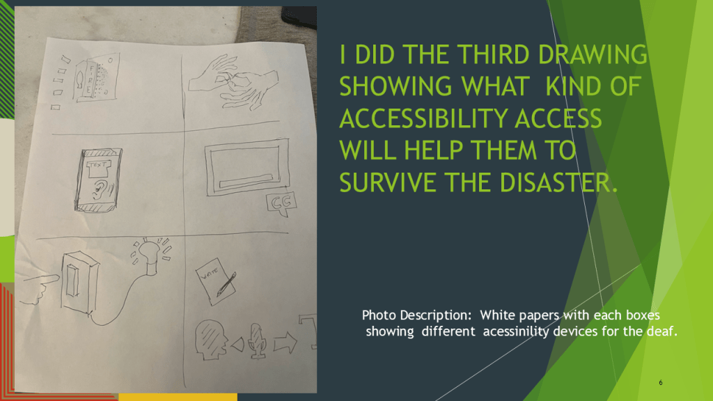 “it is almost an overwhelming piece because it is a reminder of so the multitude of issues that must be overcome by those who are deaf during a disaster. I am sure it is nothing compared to the overwhelming feeling that the person experiencing it must be experiencing.”