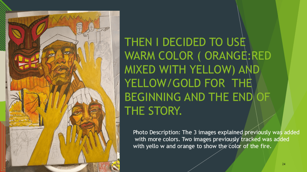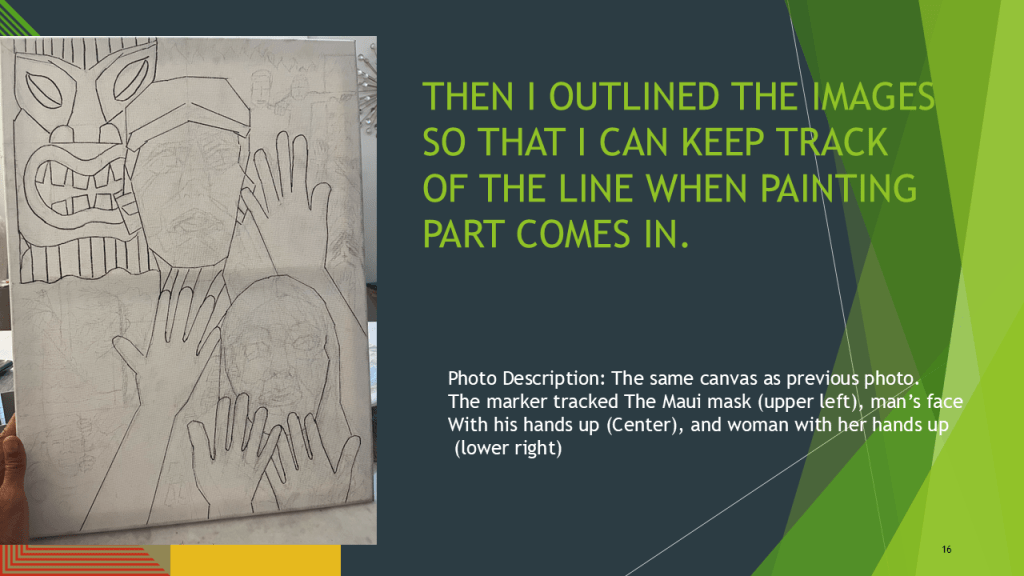 “Creating a story with my painting brush as a weapon for voices that need to be seen and heard. I was partnered with J.R. and Lina, 2 kind and courageous individuals who survived the 2023 wildfires in Maui, Hawaiʻi.”