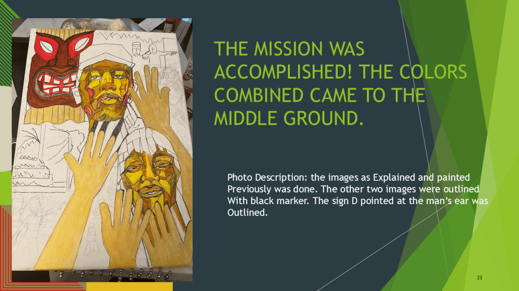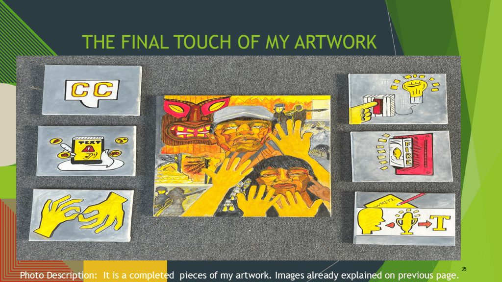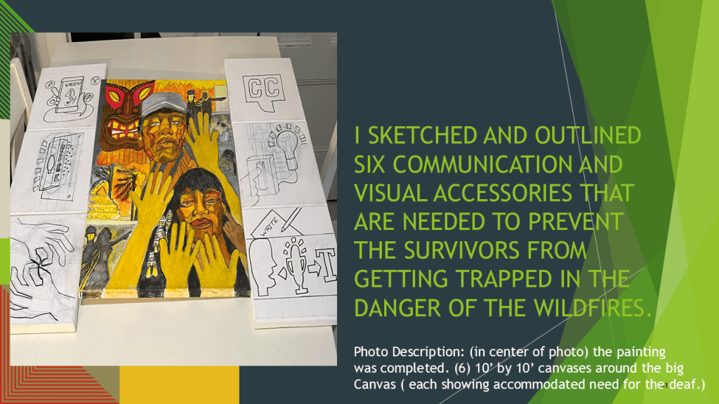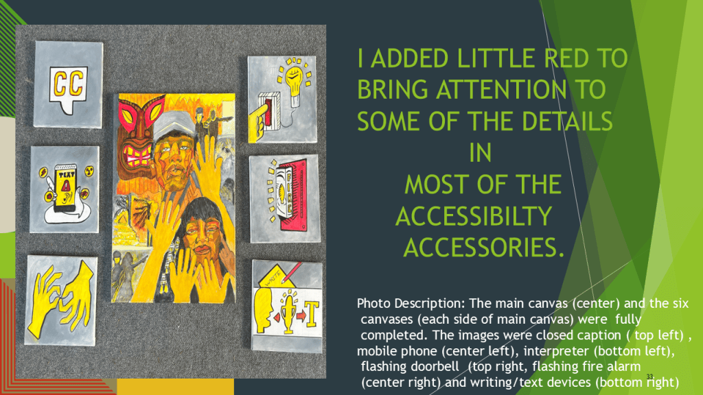 Fred M. Beam, from Tampa, FL, has been a visual artist since he was a child. His work has been displayed at many art exhibitions nationwide. He strongly promotes and supports the theme of BlackDeaf Arts, not Black Deaf Arts.